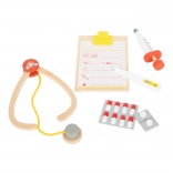 This children's doctor kit offers plenty of opportunities for play and learning. It includes wooden tools such as a syringe, toothbrush, drill, forceps, and a tooth model. Kids can become little dentists and learn the basics of dental hygiene through fun play.