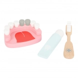 Introducing a children's doctor kit for little dentists that acquaints kids with dental care and health hygiene in a fun and creative way. The set includes realistic wooden dentist tools that teach children the importance of oral hygiene and health care.