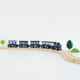 Introducing the Wooden Train Twilight, which is ideal for any child's play. It consists of four carriages that connect with safe magnets and is made from sustainable materials of the highest quality. This toy supports the development of children's imagination and coordination.