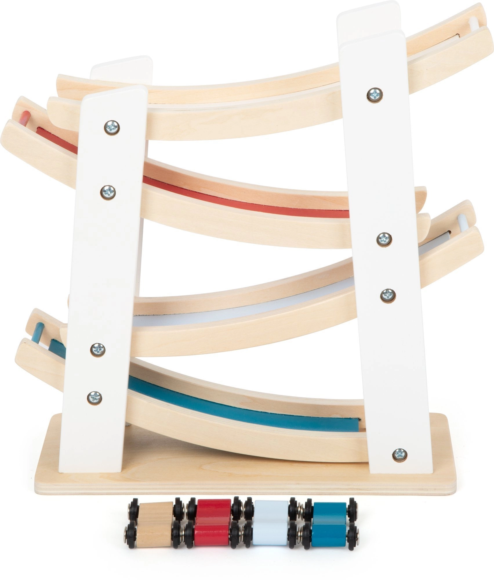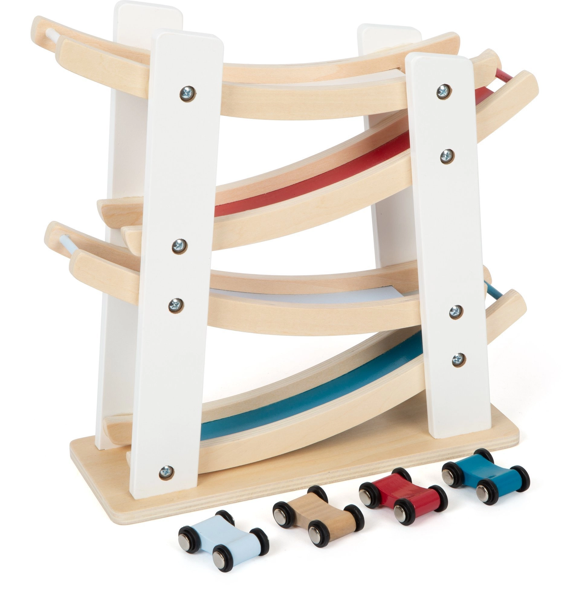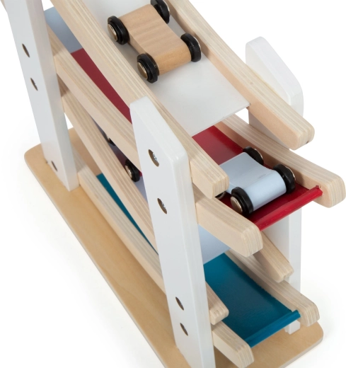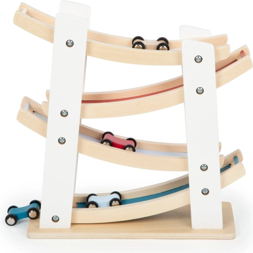 This high-quality wooden track offers a simple principle kids love: place a car on the top level and watch it glide swiftly along the curves to the bottom. The stable base and smooth surfaces ensure safe, long-lasting use.