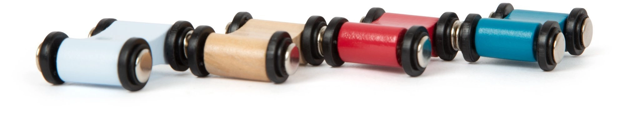 In the box, you’ll find the complete track and 4 small cars in different colors. The timeless natural look with colorful stripes fits easily into any kids’ room and supports focus and the joy of discovery.