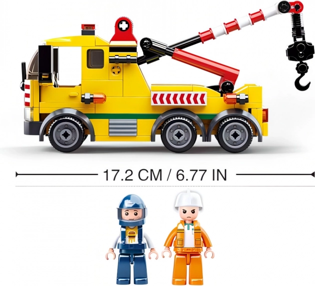 Build a realistic tow truck with a movable boom and hook and rescue the motorcycle from trouble. Ideal for dynamic play and developing imagination.