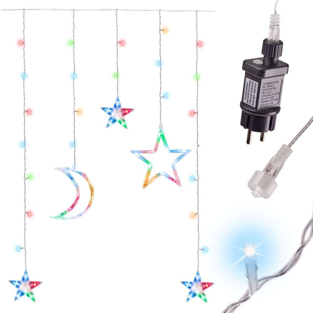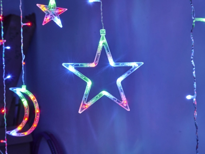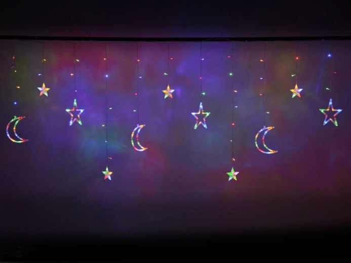 LED Curtain Lights, Moon and Stars, 2.5 m, 138 LEDs – Multicolor