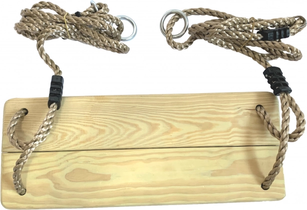 Wooden swing made of pine wood with rings for hanging and height-adjustable ropes. An essential helper for explorers of outdoor fun on the playground. Main features: Load capacity: 100 kg Height-adjustable rope (max. 180 cm) Swing seat surface 44 x 17.5 x 1.4 cm