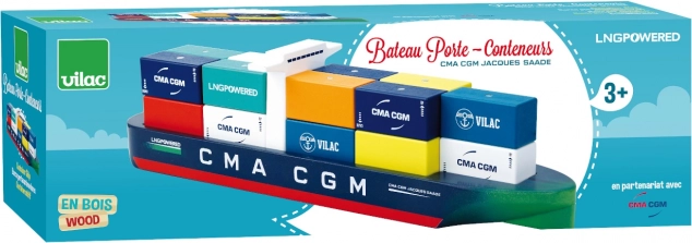 A colorful wooden cargo ship with magnetic containers, a faithful replica of the legendary JACQUES SAADÉ. Part of the Vilacity collection, fully compatible with other elements. Made eco‑friendly from quality wood, it offers children aged 3+ hours of creative play and fine motor skill development.