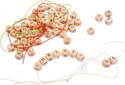 Make learning letters fun with the large wooden letter chain from Small Foot. This set includes 300 wooden pieces that can be easily threaded onto four colorful strings included in the package. Children can create name chains and word combinations, thus learning letters and developing their 'writing' skills in a playful manner.