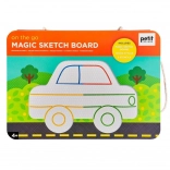 Ignite children's imagination with this magnetic drawing board. Perfect for home use or travel, featuring a magic pen attached to the board with a string, an eraser, and 5 drawing templates for drawing.