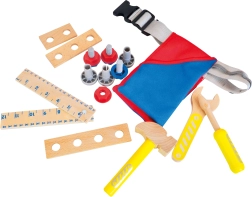 The fabric belt with practical pockets holds all the tools – from a hammer and wrench to a screwdriver, screws, and nuts. You can easily adjust the length to fit your child's build.