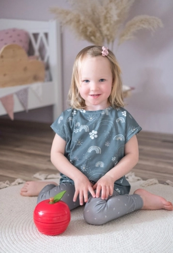 Smooth, sturdy wooden pieces in bright colors complemented by a felt leaf. Pleasant to the touch, safe, and ready for frequent play.