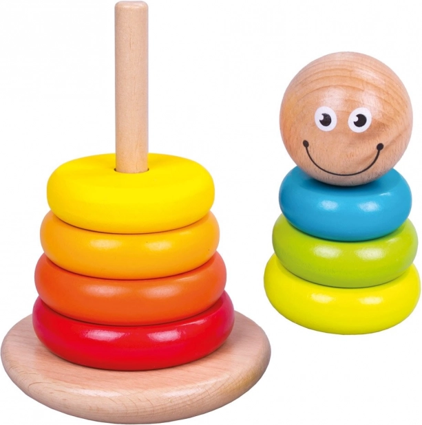A classic wooden toy for the little ones that develops fine motor skills, hand–eye coordination, and color recognition. The colorful rings slide easily onto the wooden rod, and the cheerful head adds fun to play. Made from quality wood, it meets European safety standards and is ideal for children from 18 months.