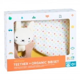 The cute bunny design will delight every child and their parents. The teether is made from organic cotton and solid beech wood with FSC certification, ensuring eco-friendliness. The bib is absorbent and adjustable thanks to snaps, perfectly protecting children's clothing.