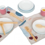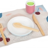 The Children's Dining Set Tasty by Small Foot brings a modern design combining natural wood with smoky blue and berry red colors to your home. This set includes plates, cups, cutlery, and placemats for two people, ideal for young chefs who want to learn proper dining etiquette.