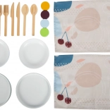 Consists of 12 pieces including plates, cups, and cutlery. Perfect for little chefs.