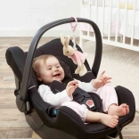 With a pink plastic ring, Flopsy can be easily attached to a stroller, car seat, or crib.