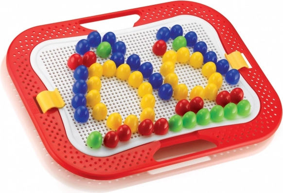 This creative mosaic set offers children aged 3+ endless possibilities for arranging pictures and patterns. Large, easy-to-grip pegs with smooth domed heads are inserted into the holes of a sturdy perforated board set in a solid frame with handles. The game stimulates imagination, develops hand–eye coordination, and strengthens concentration.
