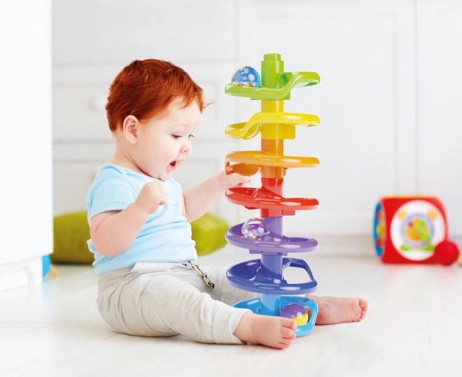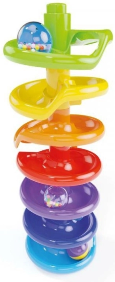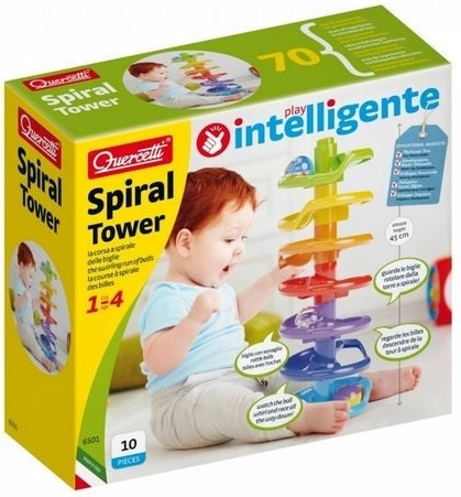 Quercetti Spiral Tower is a great toy for developing motor skills and having fun. Children aged 1 to 4 can build tall spiral towers from colorful pieces and watch the balls with rattling beads roll down. This toy captures their attention and supports hand-eye coordination.