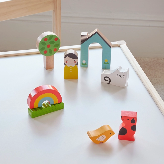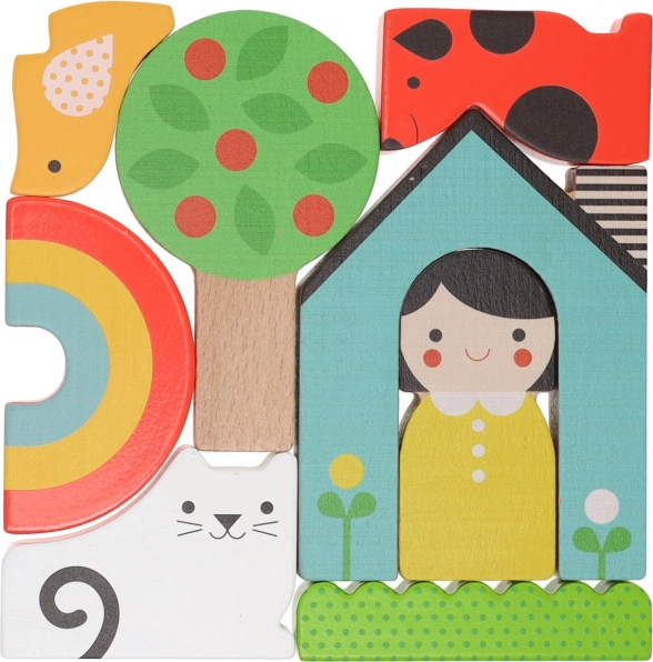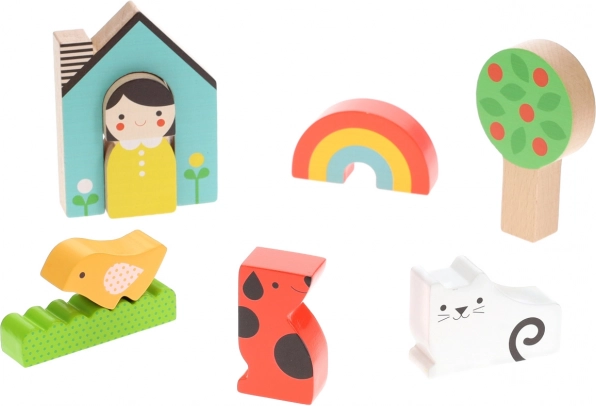 This colorful set allows children to create home scenes or build as a puzzle. The pieces are designed to fit well in children's hands and are made from 100% FSC® wood, ensuring eco-friendliness.