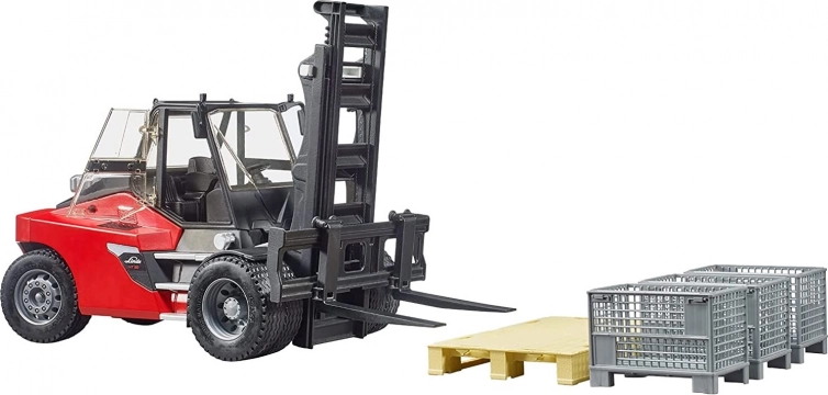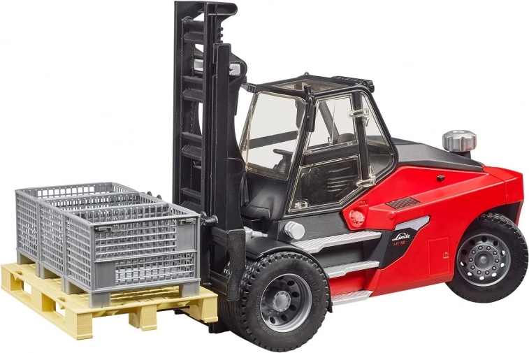The LINDE HT160D forklift by Bruder faithfully replicates the real machine — from the finely detailed cab with all-around visibility to the functional lift and fork tilt. Thanks to smoothly controlled rear-axle steering, maneuvering is intuitive and fun.
