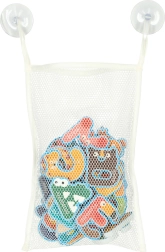 The toy supports creativity and learning through play: kids build first words, sort colors, count, and train hand–eye coordination. Thanks to the practical mesh bag with suction cups, everything stays within reach and the bathroom remains tidy.