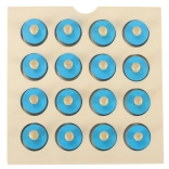 Wooden memory game is a great choice for combining fun and learning. The game has simple rules that are easy to understand even for small children. Just pick a card, remember the placement of different shapes, and cover them with blue caps. Then uncover two at a time and find matching pairs!