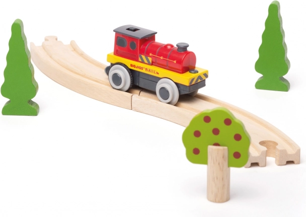 Kick-start your wooden railway with an electric locomotive from Bigjigs Rail. Thanks to its battery drive, it speeds along the tracks, easily pulling carriages via magnetic couplings, and the rubber wheel treads deliver smooth, slip-free traction. The sturdy, durable build in an eye-catching red and compatibility with most wooden railways guarantees hours of creative play.