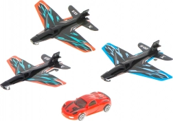The set includes 3 airplanes for team competitions and 1 car for ground races. It supports fine and gross motor skills, hand–eye coordination, and creative play that reliably pulls kids away from screens. Bold colors and an attractive design catch the eye at first glance—an ideal gift for young fans of flying and fast rides.