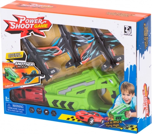 Lightweight foam planes with plastic elements launch easily and glide far—just load and pull the trigger.