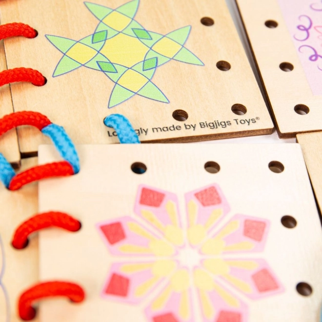 Creative wooden lacing pictures by BIGJIGS TOYS develop fine motor skills, hand–eye coordination, and patience. Colorful patterns and plenty of laces in various colors motivate children to create and practice skills. Safe design and quality materials ensure long-lasting durability and playful fun.