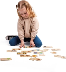 Children connect pictures that belong together as opposite meanings—for example, day and night, hot and cold, sad and happy. The smooth, sturdy pieces are easy to hold and place, allowing little hands to focus on discovering new words and connections.