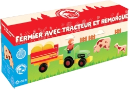 Offer your children endlessly many play combinations with wooden farmer figures from Jeujura. This set includes movable farmer figures, a tractor with a trailer, and two animals. Great for developing children's imagination.