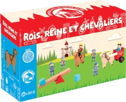 Jeujura offers a unique set of wooden figures that includes a king, queen, and knights. These figures are carefully crafted from solid wood and finished with water-based paints and varnishes, ensuring maximum safety. Thanks to the movable limbs, children can easily stage different scenes.