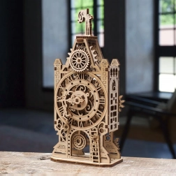 Touch history with the elegant wooden clock tower model kit from Ugears. The model features a real transmission of the minute and hour hands, visible gears, and a pendulum, bringing a Renaissance atmosphere to your interior. Thanks to its low difficulty, it’s ideal for beginners and younger builders who learn to tell time in a fun way.