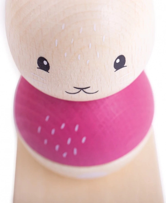 Discover a charming stacking toy made from certified FSC wood that combines a fox, a bunny, and a tree. It supports fine motor skills, hand–eye coordination, and color and size recognition. Thanks to the flexible pegs with elastic cord, the toy is safe and bendable, features smooth edges, and is colored with non-toxic paints.