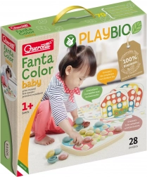The Quercetti FantaColor Baby Mosaic is made from bioplastic, which contains wood fibers, reducing CO2 emissions and ensuring 100% recyclability.