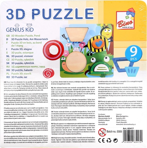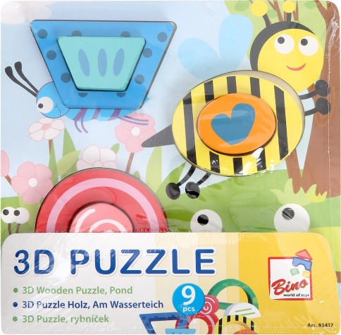 Discover a fun wooden 3D puzzle with a pond theme from Bino that nurtures children’s imagination and skills. Thanks to the sturdy base and 8 colorful pieces, kids practice shape recognition, fine motor skills, logical thinking, and concentration. The safe design made of solid wood and thick plywood with non-toxic paints and varnishes ensures long-lasting durability and comfortable use.