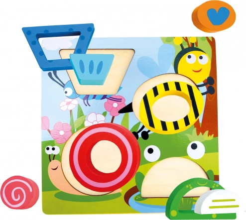This wooden 3D insert puzzle with cheerful, brightly colored pond motifs is an ideal tool for children aged 3 and up. The pieces are placed into a sturdy base in the correct order, supporting understanding of sequencing and developing coordination skills. High-quality workmanship from solid wood and thick plywood makes this toy a durable companion for everyday play.