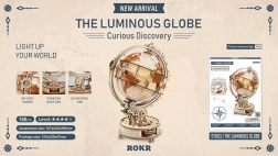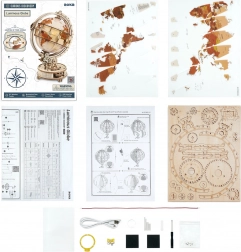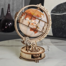 Discover the magic of the world with a decorative yet functional model — a wooden globe with LED lighting that you assemble yourself. Thanks to a gear train, the globe rotates smoothly, and it includes a mechanical magnifier for reading details and energy‑saving LED lighting powered via microUSB/USB‑A. This high‑quality plywood kit offers high difficulty, thoroughly tests your patience and focus, and once completed becomes a stylish night lamp with a retro design.