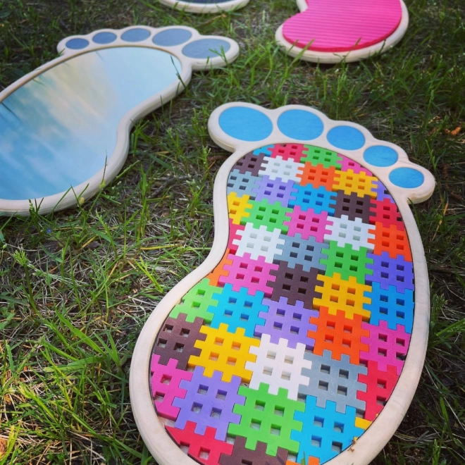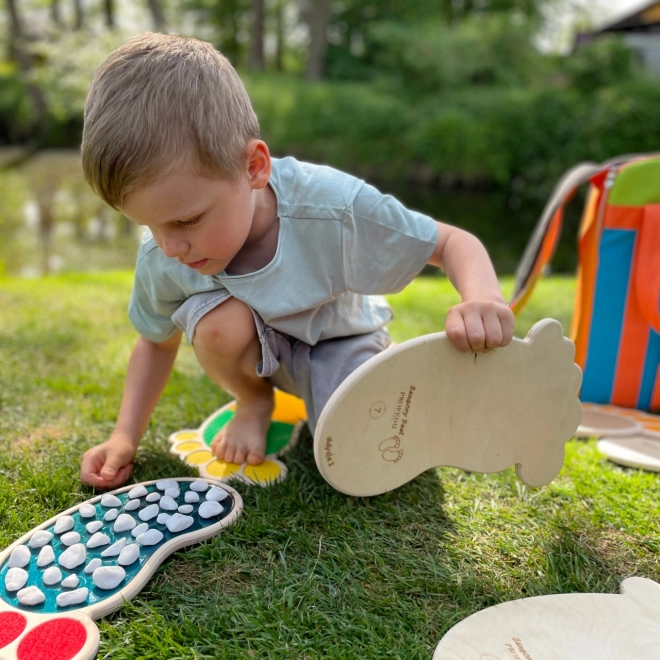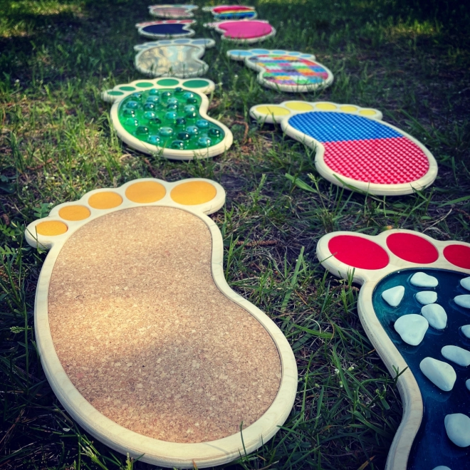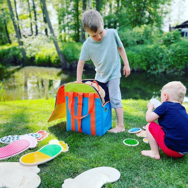 The sensory steps and circles set is designed to be robust and durable, ideal for everyday use. Colorful and creative designs enhance the aesthetics of your space and can also be used for various activities. Stylish and sturdy wooden organizers provide easy storage of the set.