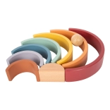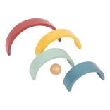 This wooden rainbow provides a great opportunity for children to develop their imagination and motor skills. It includes 8 colorful arches and a wooden ball, which can serve as an educational tool for understanding dimensions and colors. The toy is made in accordance with Montessori pedagogy and is ideal for free play.