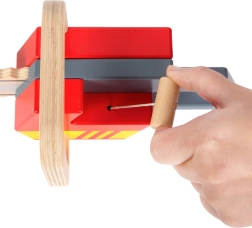 Discover a robust wooden toy chainsaw with a firefighter theme that offers kids a realistic firefighter role-play. Thanks to the large ergonomic handle, it fits perfectly in small hands, and the pull-start cord with sound and vibrations enhances the play experience. A perfect addition to a firefighter backpack for little rescuers.