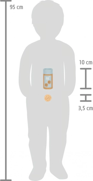 The cookies come neatly packed in a cylindrical container with a removable lid, making storage and transport simple. They are compatible with other products from the “Fresh” range, so they can be part of a larger play collection. Toys in this line offer children long-lasting fun and are popular for pretend baking or shop play.