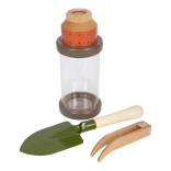 The backpack has adjustable shoulder straps, a wide zipper for easy access, and practical loops for attaching equipment. Kids will enjoy every trip into the woods, meadows, or gardens, discovering and learning new things.