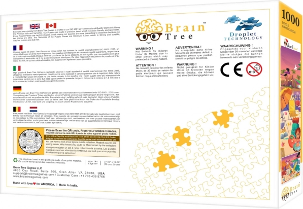 Relax with the BRAIN TREE Sunset on the Beach puzzle. A set with 1000 randomly shaped pieces, a matte premium print, and a durable finish offers smooth assembling with no glare. The box includes a poster, sorting trays, a lid stand, and a resealable bag for safe storage of pieces.