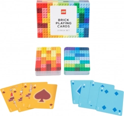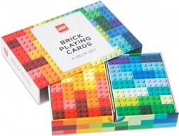A stylish set of licensed LEGO playing cards featuring 2 separate decks (a total of 108 cards) suitable for canasta, poker, and other card games. They stand out with vibrant colors, LEGO bricks and minifigure motifs, and high-quality production using recycled and sustainable materials with non-toxic inks.
