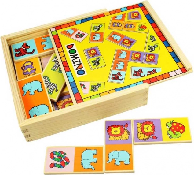 Bigjigs Toys wooden animal dominoes: 28 pieces, sliding-lid box, quality wood, from 10 months, develops motor skills and concentration.