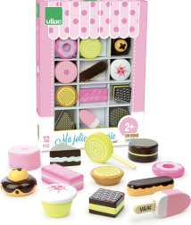 Treat little pastry chefs and cooks to the joy of play with the VILAC wooden treats set. The colorful pastries and goodies look just like the real thing, are perfect for a play kitchen or pretend shop, and pleasantly develop imagination and fine motor skills.