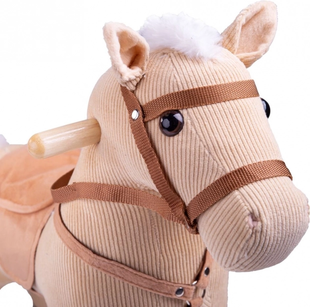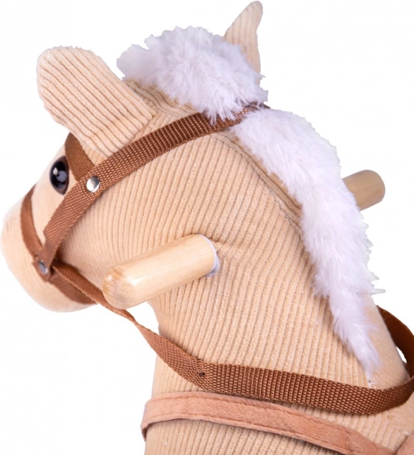 The beige rocking horse is designed to provide children with a safe and comfortable ride. The soft saddle and bridle made of fine corduroy invite touch, helping play to develop not only imagination but also motor skills. The robust wooden base ensures steady rocking without unwanted wobbling.