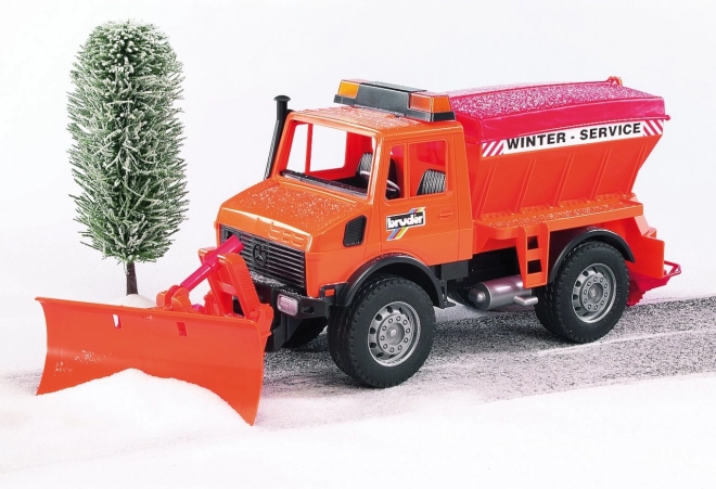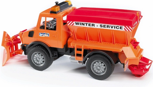 The Mercedes-Benz Unimog by BRUDER is a robust spreader with a plow designed for winter tasks. Thanks to its precise construction, it provides kids with realistic play—from clearing snow to spreading grit on the road. The front articulated axle ensures excellent maneuverability, and the plow is not only rotatable but also easy to remove.