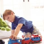 The Green Toys blue train is an ideal toy for developing children’s imagination and fine motor skills. The steam locomotive pulls two easily detachable carriages, and the set consists of 4 pieces in a beautiful color combination. The box includes two adorable bear conductor figures.