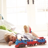 All aboard! This sturdy train from Green Toys with a locomotive and two carriages brings creative play indoors and out. It’s made from 100% recycled plastic from milk jugs, contains no BPA, PVC, or phthalates, and has no metal axle or external coatings. Two bear conductors are included, and all parts can be easily detached and cleaned in the dishwasher.